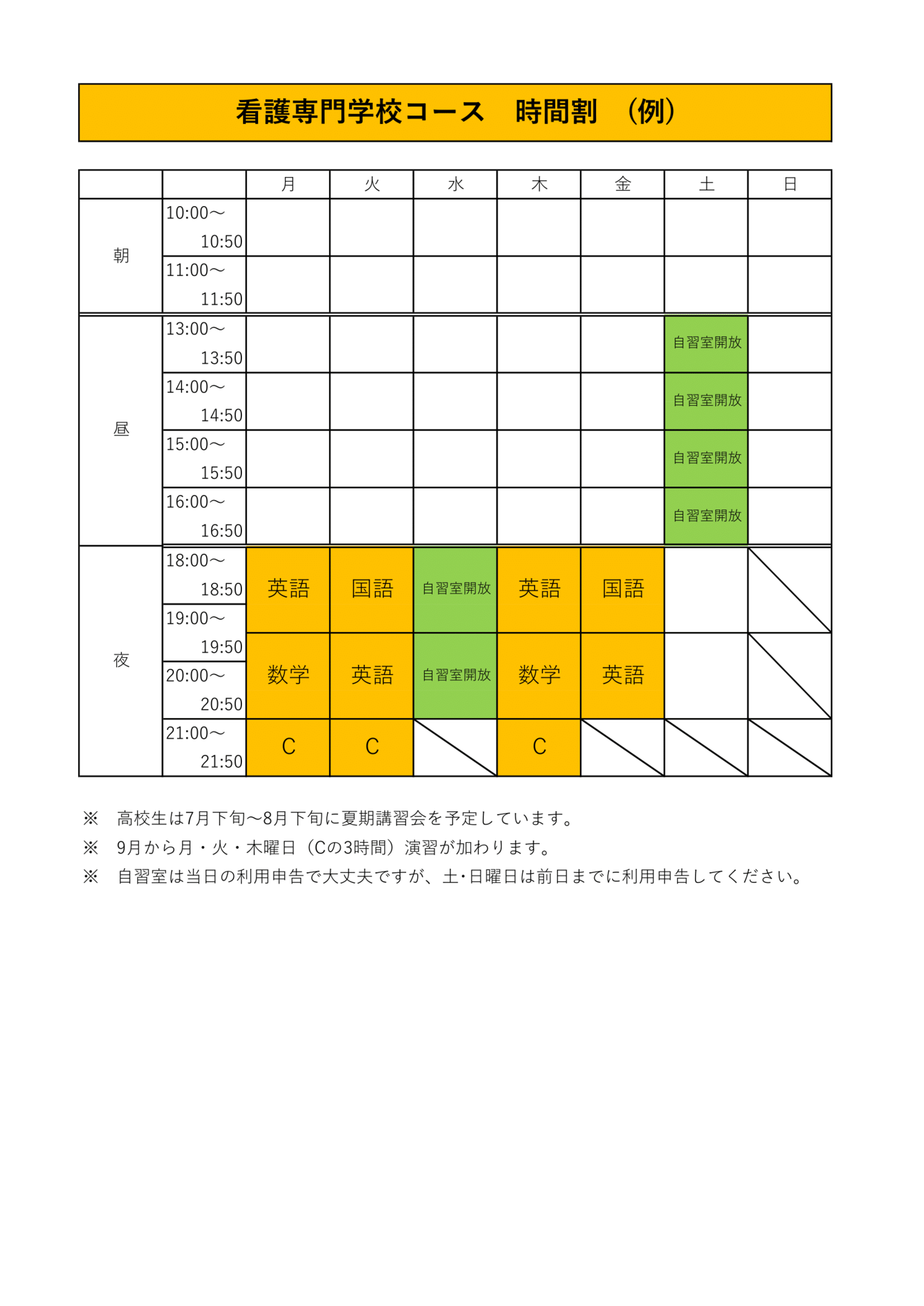対象 ☆看護学校受験を志望する方で通塾